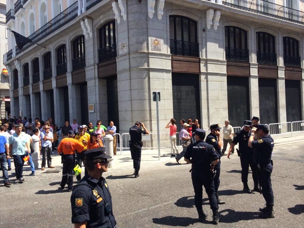 Puerta del sol Apple Store uncovered and a Monarchy protest